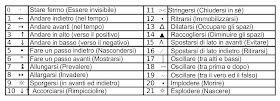 In realtà questa, come del resto abbiamo già visto, è una delle tante tabelle esistenti di questo tipo, nella quale ad un segno (o disegno), che è più che altro un simbolo, viene correlato un movimento.